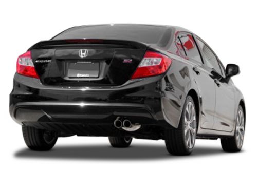 Introducing the new Takeda exhaust system for the 2012-2015 Honda Civic Si Sedan. In recent testing this system produced 9 horsepower and 9 lbs. x ft. of torque. This exhaust system is constructed from 2.50" mandrel bent stainless steel and is MIG-welded. The system uses a high flow muffler with 2.50" tubing which improves performance across the power band while maintaining a great tone. To finish off this exhaust is a dual double wall angle cut 304 stainless steel tips. This exhaust uses all factory hanger locations for a hassle free installation. No modifications necessary.