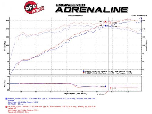 The all new Takeda Retain Intake System produces up to 9HP and 9lbs. x ft. of torque over stock, while outflowing the factory intake by 24%. A one-piece powder-coated heat shield is used to protect the filter from unwanted hot engine air for maximum performance. Takeda intakes come complete with all necessary hardware.