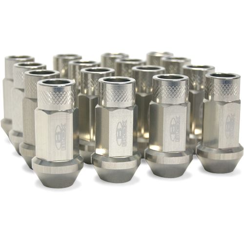 Forged AL7075 lug nuts are perfect for both performance and show enthusiasts. Each feature knurled ends for better grip and are anodized for durability and show quality appeal. For maximum results, use with BLOX Racing Extended Wheels Studs.