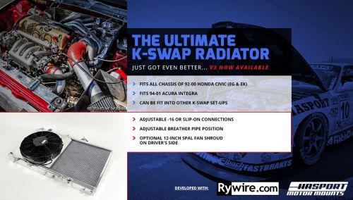 After going back to the drawing board in the pursuit to make CSF products better, CSF introduces it's new V3 K-swap radiator. The new K-swap v3 radiator is now even more universal and more adjustable to fit in even more configurations for all of your wildest K-Swap dream set-ups.