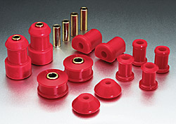 On the front of vehicles, they make a dramatic improvement in the way they handle-with quicker steering response and greater vehicle control. Whatever your demands, proper alignment (caster and camber) is better maintained by the use of the correct performance durometer of the bushing's materail formulation. On the rear, these control arm bushings are a must for controlling wheel hop and increasing cornering control for competition uses as well as maintaining alignment on and off-road.