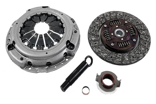 Clutch kit includes pressure plate, disc, throwout bearing, alignment tool, and pilot bushing.