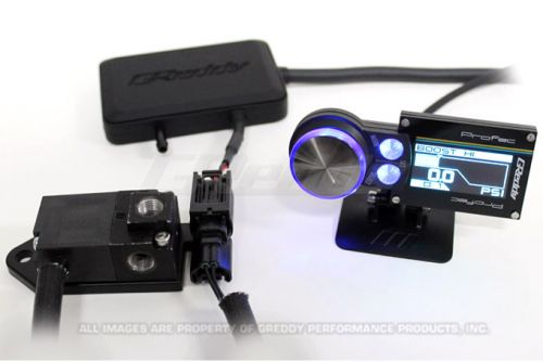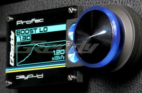 The new PRofec is compact, powerful and easy to use. The large OLED Display, with the simple two-button / rotary-dial control, make for intuitive operation. An ultra slim controller can display in digital, bar-graph, or graphical modes and can be rotated 180 degree for installation with the included adjustable mount or flush mounted. By separating the display and control unit in the driver's compartment, from the engine compartment-mounted, waterproof, sensor unit, it makes installation straightforward. Only one thin harness is required to be routed through the firewall. The combination of the new 300kPa (43.5psi) integrated pressure sensor, the more compact solenoid valve and faster ECU processer, provide quicker response and the most stable boost curves yet. The PRofec also maintains popular features like, Lo, Hi, Scramble boost presets, last-boost display, peak-hold recall, warning alert and safety limiter. The next evolution of the GReddy PRofec line of electronic boost controllers is here!