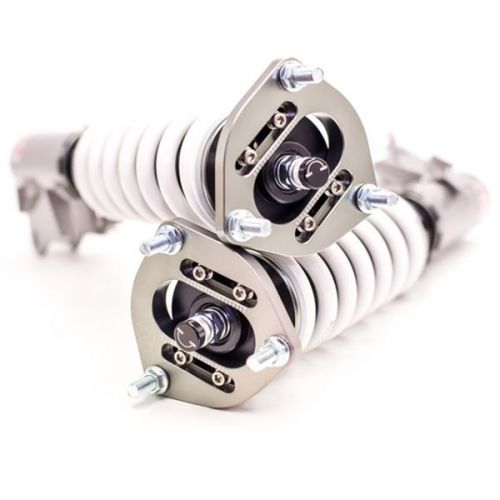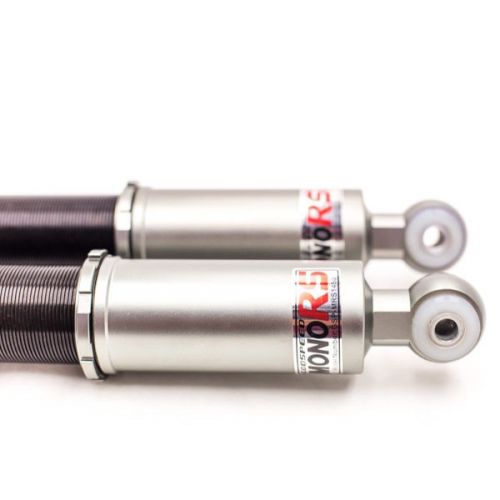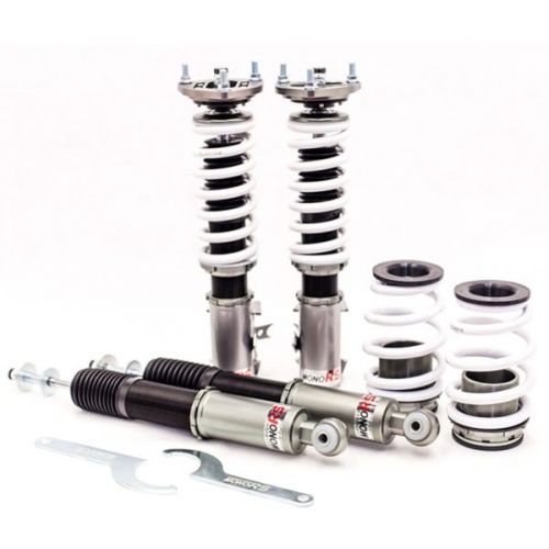 MonoRS Coilover damper kit by Godspeed Project are intermediate suspension upgrade setup for daily and Sunday club racing. Lowering your car with improved springs over factory and paired with Mono-tubo shocks with valving that allows 32 levels of rebound adjustment to improve handling without sacrifice comfort. Ride height can easily be adjusted by twisting the lower mount bracket. In order to keep weight gain at the minimum, most of attachments and accessories are CNC machined from billet aluminum. Koyo bearings are used when camber plate top mount is applicable depends on car models. To assure that our customers are getting high quality products, MonoRS coilovers are covered by 12 months limited warranty by the manufacturer from top to bottom just like other big brand name setups.