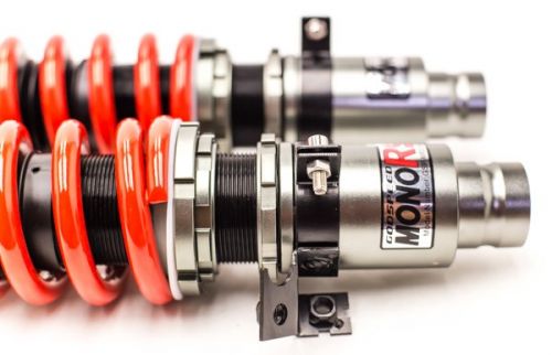 Introducing the Godspeed Project Mono-RS coil over line. The Mono-RS series released in 2013, is considered to be the coilover for those who are looking for a high performance suspension system, set to perform exceptionally well in track use and also provide the comfort that a coil over should provide when driving on the street and highway. Having 32 levels of dampening adjustability, it allows you to fine tune the suspension to your liking whether you are on a track or on the way to work. All Mono-RS coilovers come with a Mono-Tube shock that houses gas and oil in separate chambers allowing consistence shock performance regardless of the abuse the shock is given. The top hats of the Mono-RS series come with a KOYO Japan built 6204Z bearing providing the longevity and performance of a higher end coilover system at a more affordable low price.