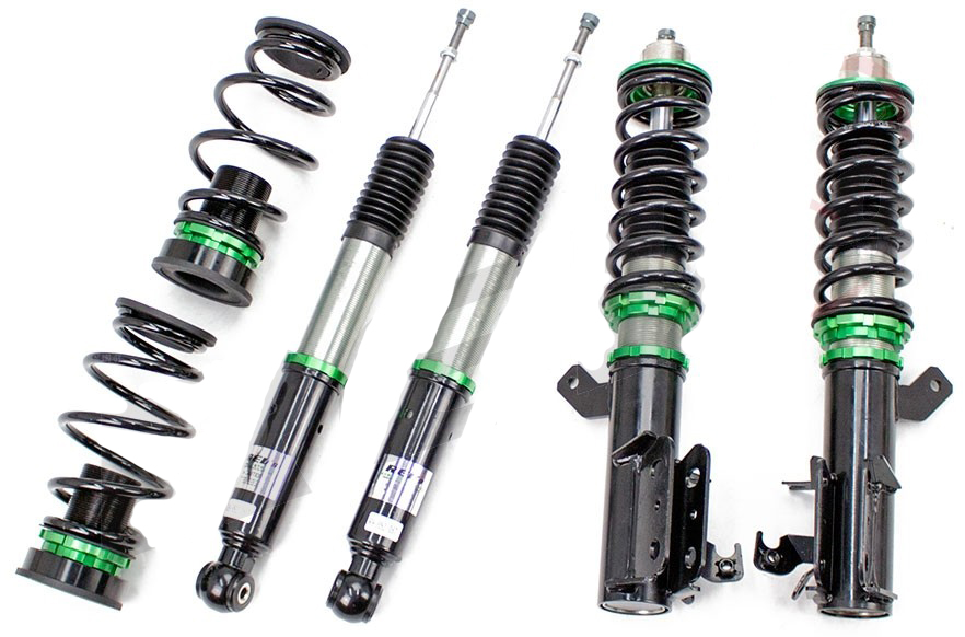 Hyper-Street II coilover suspension upgrade features mono-tube shocks with 32 clicks rebound settings and full length adjustable. Mono-tube shocks provides larger capacity for gas and oil to improve comfortable level of typical lowering vehicle. Special 32 clicks of valving allows user to fine tune rebound force settings. Independent spring tension and full length adjustable allows drop without sacrifice comfort by shorten pitch distance.