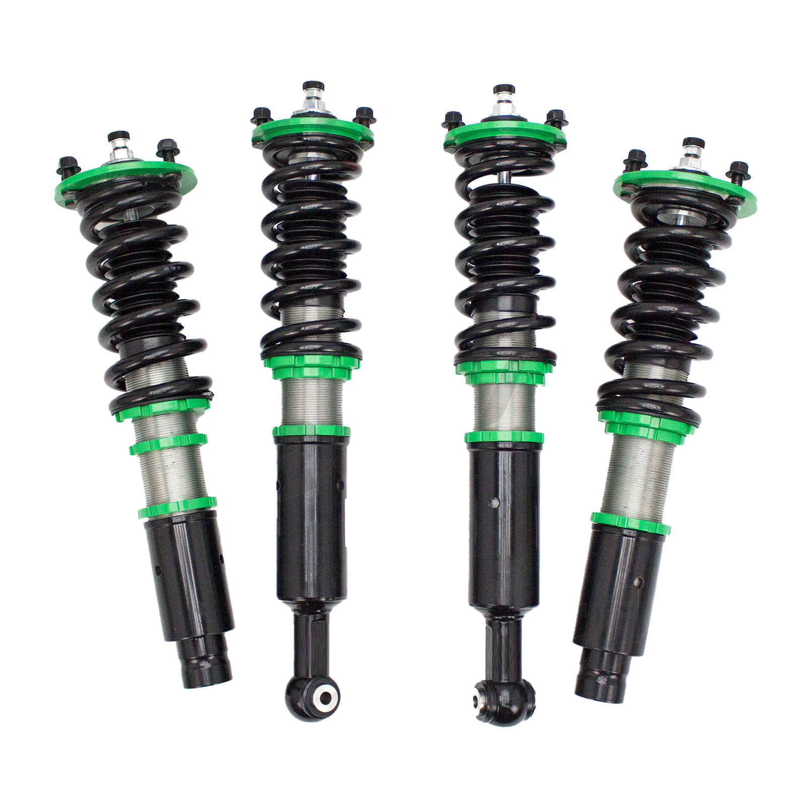 Hyper-Street II coilover suspension for the 2004-2008 Acura TL features mono-tube shocks with 32 clicks rebound settings and full length adjustable. Mono-tube shocks provides larger capacity for gas and oil to improve comfortable level of typical lowering vehicle. Special 32 clicks of valving allows user to fine tune rebound force settings. Independent spring tension and full length adjustable allows drop without sacrifice comfort by shorten pitch distance.