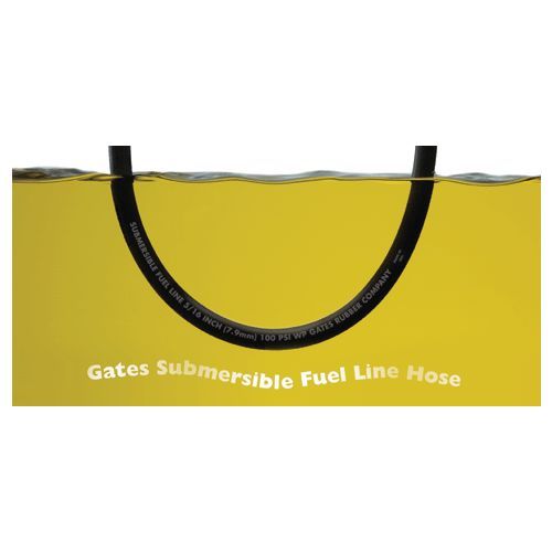Gates submersible fuel line hose contain a special compound called Fluoroelastomer (FKM), which resists gas permeation and retards aging. It is also reinforced with Aramid Fiber - the same fiber used in bulletproof vests and that is pound for pound stronger than steel.