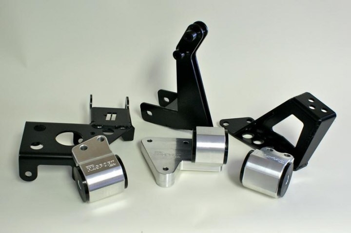 Bolt The K-Series mount kit into your 92-95 Civic or 94-01 Integra. Take advantage of Honda's newest creation the K-series. Sounds good, huh, well your gonna need these. Made of a lightweight ultra strong T-6061 aluminium these mounts have a lifetime warranty. Engine movement is minimized by controlling the durometer of the polyurethane bushings, and as such, only 3 mounts are required.