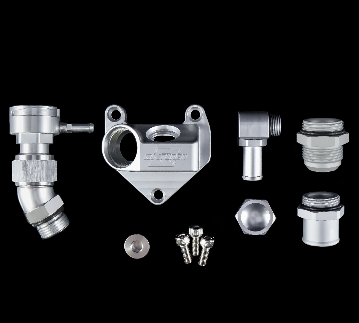 The K-Tuned Upper Coolant Housing will compliment our Swivel Neck Thermostat and our Water Pump Block off Plate. All of these parts allow plenty of options for custom and race engine cooling setups.