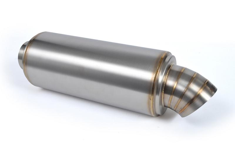 - The K-Tuned Turndown Muffler is constructed entirely of 100% T304 stainless steel, including internals.
