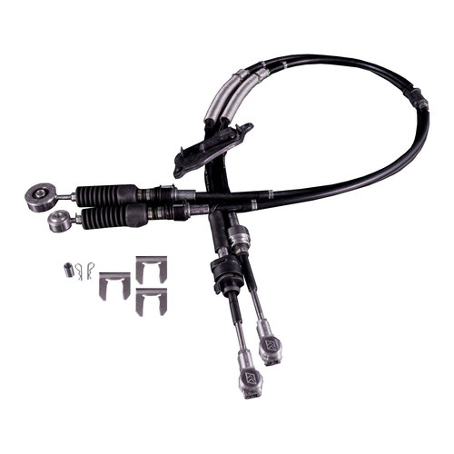 These OEM-Spec Shifter Cables are made entirely of high quality materials and they were designed to meet or exceed the OEM units in all areas of construction. The transmission side of the cables features our new spherical bushing which allows greater movement while still providing a strong positive cable. The unique design of these bushings allow the cables to pivot freely while providing a strong and tight feel. These bushings improve shift feel and accuracy when compared to the factory rubber bushings. At the transmission custom billet cable ends are used to provide a strong replacement over the OEM plastic unit. Our cable set is sold complete with all hardware for installation. This includes 2 reusable hairpin style cotter pins for all cable end connections, and 3 cable retaining clips. Note that 1 of the connections uses a self-locking setup on the shifter side. Our OEM-Spec Shifter Cables are priced right, made to last and work flawlessly.