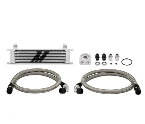 An oil cooler kit is a must for any car with a high performance engine. Even with optimal driving conditions, increased oil temperatures will cause a drop in pressure and will decrease the ability for your engine to be properly lubricated. This could potentially cause engine seizure. Keep your oil cool with the Mishimoto universal oil cooler kit. This oil cooler kit includes all needed adapters for any vehicle application.