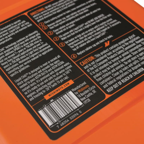 Do you hear that? That little sigh that's coming from your engine bay? That's your radiator asking for Mishimoto Liquid Chill Synthetic Engine Coolant. Formulated to operate flawlessly under extreme conditions and with both gasoline and diesel, Liquid Chill will help your engine warm up quickly and maintain ideal operating temperatures. Liquid Chill Synthetic Engine Coolant technology combines an inherently nontoxic propylene glycol base with unique poly organic additives (POAT) to allow a service life that can exceed 7+ years or 750,000 miles in Heavy Duty (diesel) applications and over 2+ years or 250,000 miles in Light Duty (gasoline) applications, although Mishimoto engineers recommend consulting your service manual for application-specific guidelines. Liquid Chill Synthetic Engine Coolant is designed to meet or exceed all stock specifications and exceeds the specs needed to pass ASTM D6210 and ASTM D3306 coolant tests. It's premixed with deionized water, so it's ready to use and safe for all water-cooled engines, protecting against boilover to 265'F and freezing to -26'F (with 15 psi cap)**. The proprietary formula doesn't contain any nasty nitrates, amines, high-fructose corn syrup, phosphates, silicates, borates, and all those other "ates" that will clog up thermostats and radiators, and cause excessive wear on water pumps. However, Mishimoto engineers strongly recommend that you and your children do NOT consume this coolant. Seriously, don't drink it, and keep it on a high shelf so kids and pets can't get to it. Now, by popular demand, we're offering Liquid Chill in convenient 64 oz. containers, so you can top your coolant off, quickly refill your dirtbike radiator, or just keep it around as a conversation piece.
