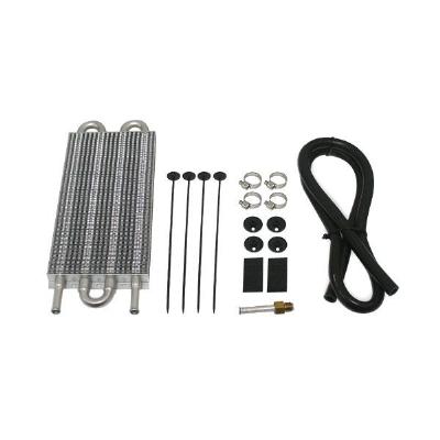 The Mishimoto Universal Transmission Cooler and Power Steering Cooler Kit is used to cool automatic transmissions and power steering units. Some Mishimoto radiators are available only for manual transmission applications. By using the universal transmission cooler, automatic transmission users have the ability to use our all-aluminum radiators with their automatic applications. Transmission coolers can also be installed as supplemental cooling units for trucks which undergo a high amount of stress due to towing. Many transmission cooler kits use standard 3/8" push on fittings, although you should check your service manual for your specific application.