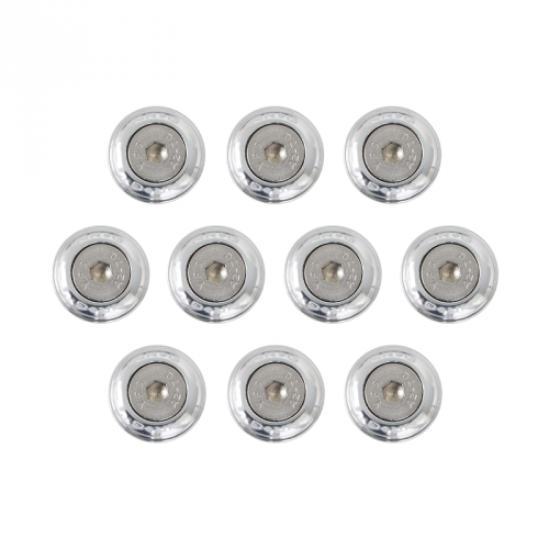 NRG Innovations would like to introduce our fender washer dress up kit which is available in 10 different colors. The added benefit of the fender washer kit is that they can also be used as rivets for metal and plastic applications. Each package comes with a base that can be set within a drilled hole to serve as an anchor for the bolt. The washers are made of anodized T6061 Aluminum and the hex bolts are constructed of stainless steel.