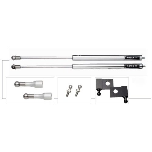 Our Polished Hood Dampers made for your stock hood. These units allow the hood to remain up and stable even under high wind conditions and were thoroughly tested for repeated use to avoid injuries while working on a vehicle caused by the hood falling off on an individual. With the use of oil filled shocks and lightweight dampening for lightened hood applications, these dampers have Lift-Assist and Slow-Decline features that provide a safer work area and a way to exhibit modifications under the hood.