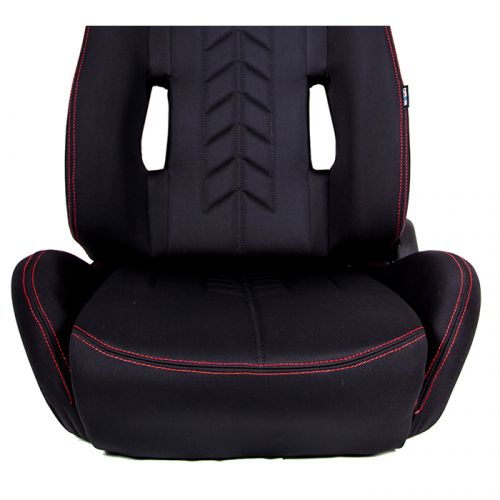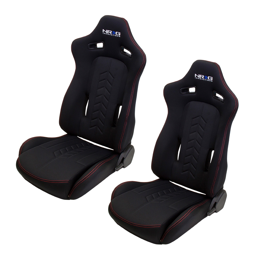 "The Arrow" NRG Cloth Sport Seats. Black with Red Stitch with NRG Logo.