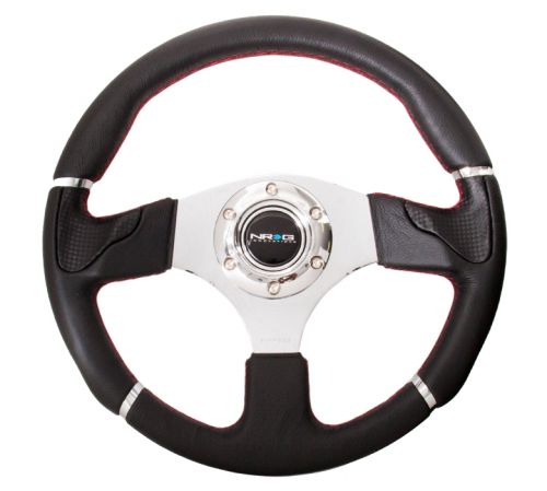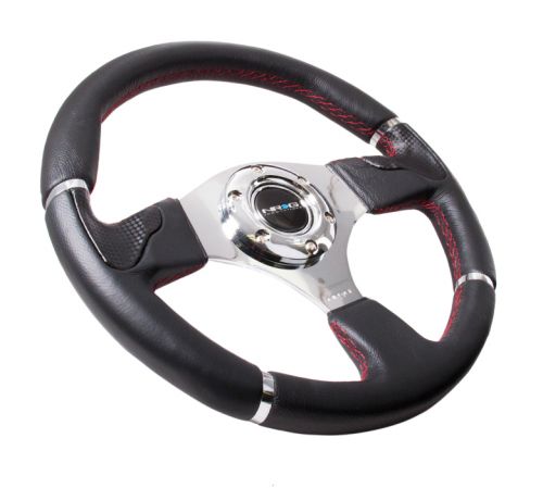 The ST-008R "Evo" Sport Steering wheel is the perfect wheel for auto tuners who wants the feel of soft supple leather and elegant chrome finish highlighted with red stitches to complete that aggressive look inside the cockpit. These units provide the best style in both quality and durability. NRG steering wheels are sure to give your vehicle that extra edge of control and look to match your lifestyle.