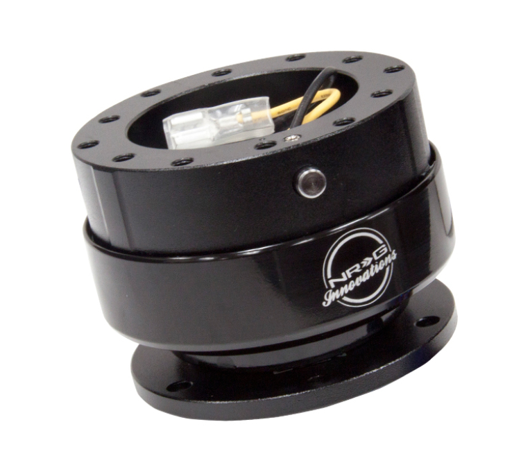 The NRG Innovations Black generation 2.0 Quick Release certified is made with only aircraft grade aluminum without any plastic harness inserts, with one gloved hand, it allows the release of the quick release and steering wheel from the steering shaft with one motion. Self index feature adds accuracy and functionality. Features a black body with titanium ring painted with Shreddy logo.