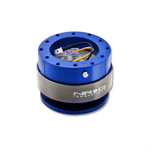 The NRG Innovations Blue with Titanium Ring generation 2.0 Quick Release certified is made with only aircraft grade aluminum without any plastic harness inserts, with one gloved hand, it allows the release of the quick release and steering wheel from the steering shaft with one motion. Self index feature adds accuracy and functionality. Features a black body with titanium ring painted with Shreddy logo.