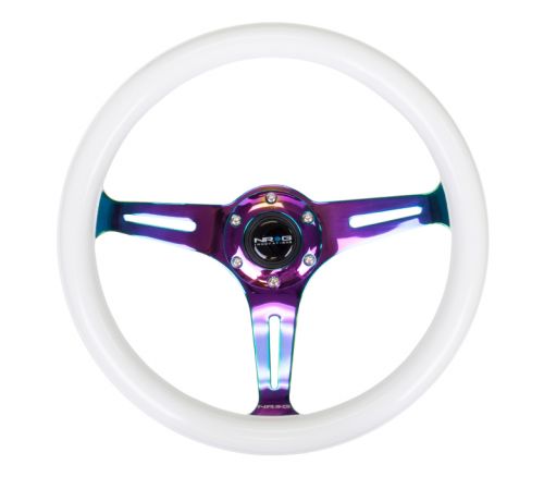 Rule the darkness with the NEW LUMINOR SERIES. The Luminous wood made from high quality materials will set you apart from the crowd and the aggressive 3 spoke center in Neochrome, Black and Chrome finish to match your ride. A great addition to any car for added style and look that glows in the dark. Available in 350mm.