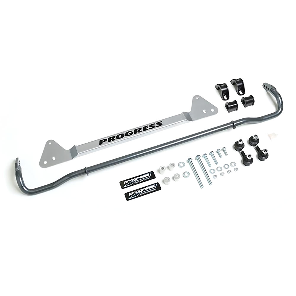 Progress anti-sway bars dramatically improve handling. How? They minimize the traction-robbing body 'lean' that rolls part of the outside tires off the pavement. Our Sport-tuned Anti-sway bars replace skinny OEM bars and rubber bushings with larger diameter (stiffer) alloy steel bars and polyurethane bushings. More roll stiffness means less body "lean", and the tires stay flatter on the pavement (larger contact patches). The result is more grip and added driver control!
