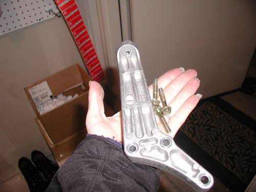 I removed a bracket that holds the stock airbox or Injen heatsheild. It is not a great weight savings, but it does clean things up in the engine bay. It still looks like something is missing, but not as much.