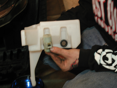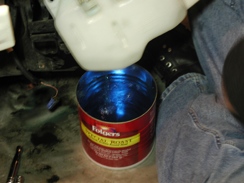 Remove and drain the stock washer fluid bottle. (Mmmm, good to the last drop)