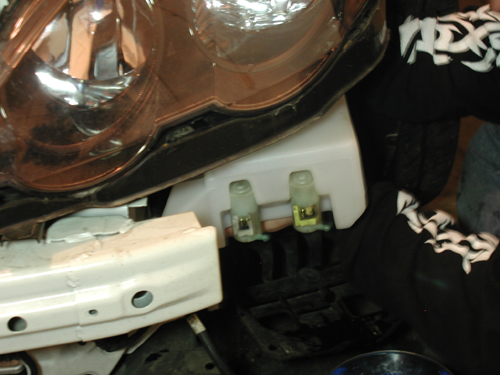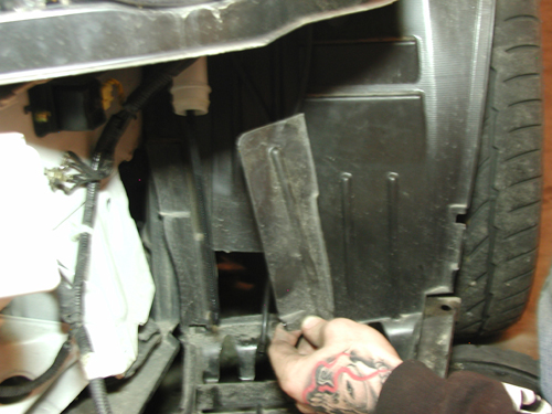 Remove the two screws that are located in the fenderwell. There is only one screw per side. It is located in between the bottom and the top of the fender.