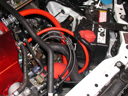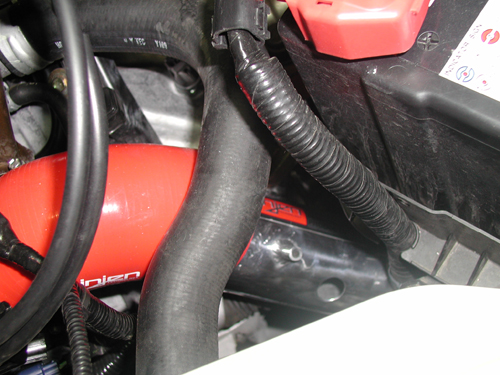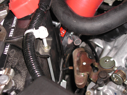 Note: You may have to either cut off or bend the bracket that holds battle cable to the battery bracket. Injen suggests that you remove the battery and bracket. This would help the install and help to remove or cut the bracket in question.