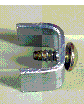 Make a small bracket to mount the assembly to the door panel. Use a scrape piece of aluminum approx. 1/2" wide by 1-1/2" long. Bend the piece into a "U" and then drill a hole in the center. You will need a 3/8" #8 sheet metal screw for each "U" bracket.