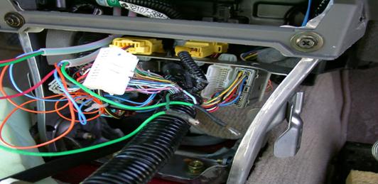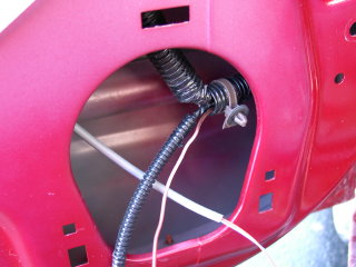 e. Now you should be able to easily feed your new wires through the rubber feeder grommet. You will need about 12' of #22 gauge wire to get to the center console.