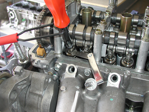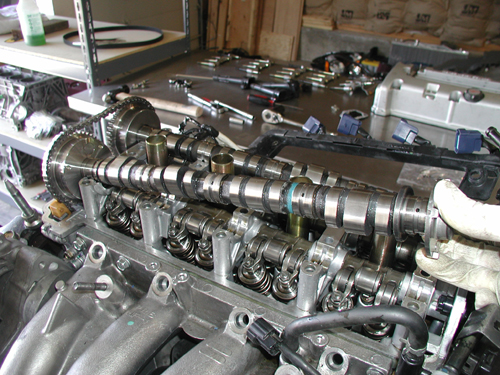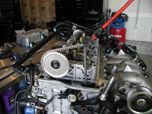 Once the valve cover is removed, make sure the lines on the cam gears are lined up with each other. If they are away from each other you need to turn the motor over 180 degrees and they will line up.
