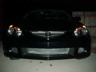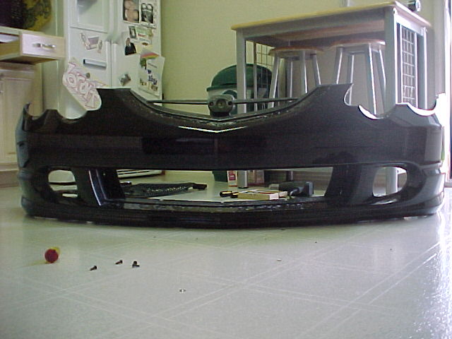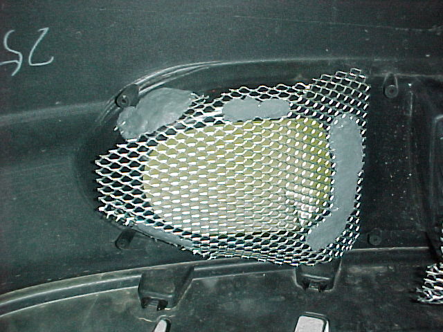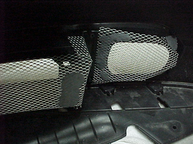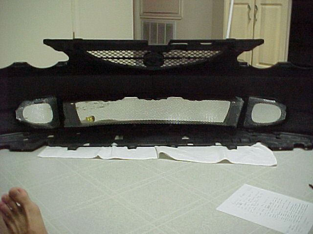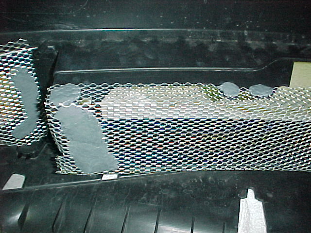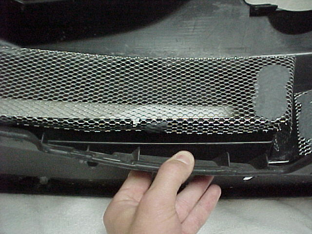 Cut triangular slots in the center to allow for the bend in the center of the bumper. I did this after setting the first side to be sure and get it aligned properly. Press the mesh into the crease and hold snugly while you bond the other large area on the other side.