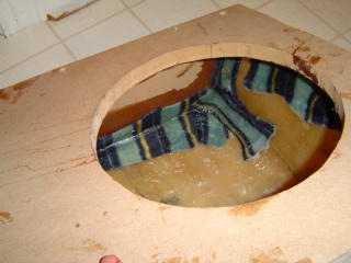 I used a jig saw to cut the hole, a table saw to get all the angle cuts flush where the pieces of MDF are joined. I also used liquid nails between every piece of wood and ran a bead at the seams. I screwed the MF together with 2" screws pre-drilling and counter sinking the screws. MDF is just fancy particle board that will fall apart if you rough house it too much. I wanted the option to mount the amp just to the left of the hole for a cleaner look. As I'm writing this, I'm still undecided about the amp but still have all the options.