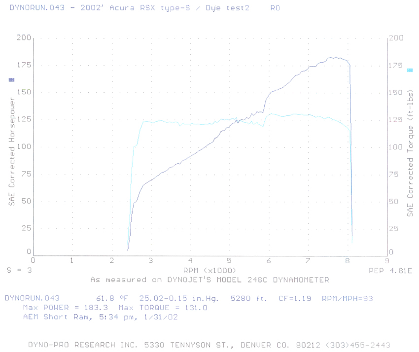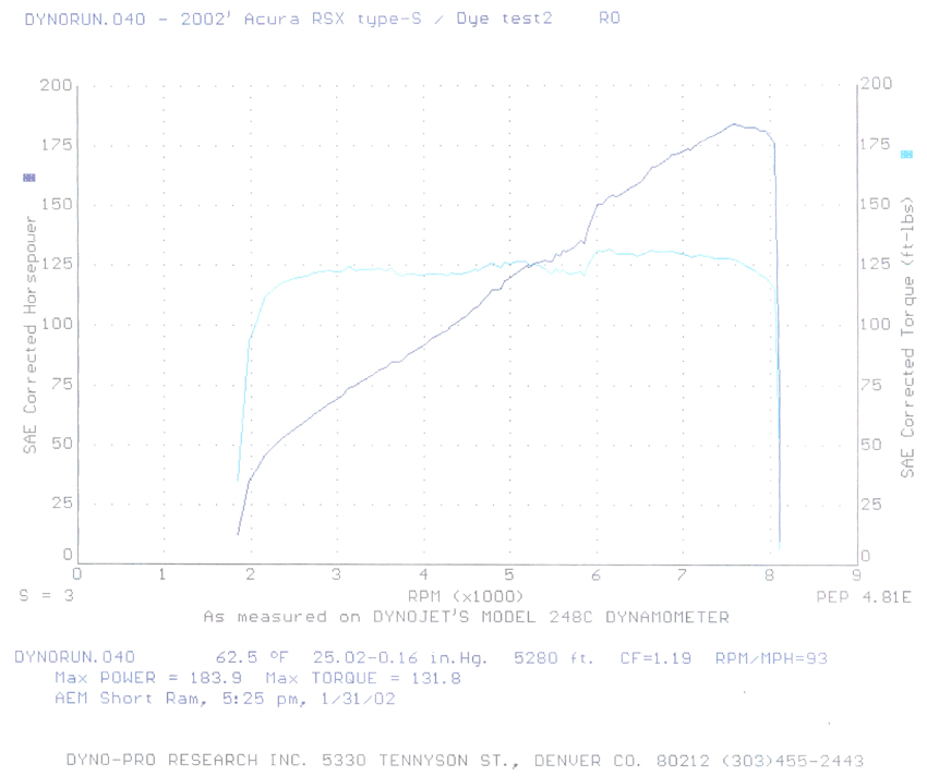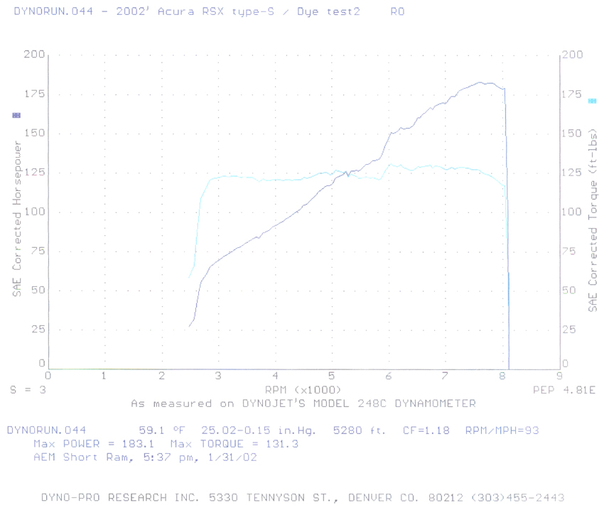 AEM Short Ram - Average: 183.785hp & 131.386lbs